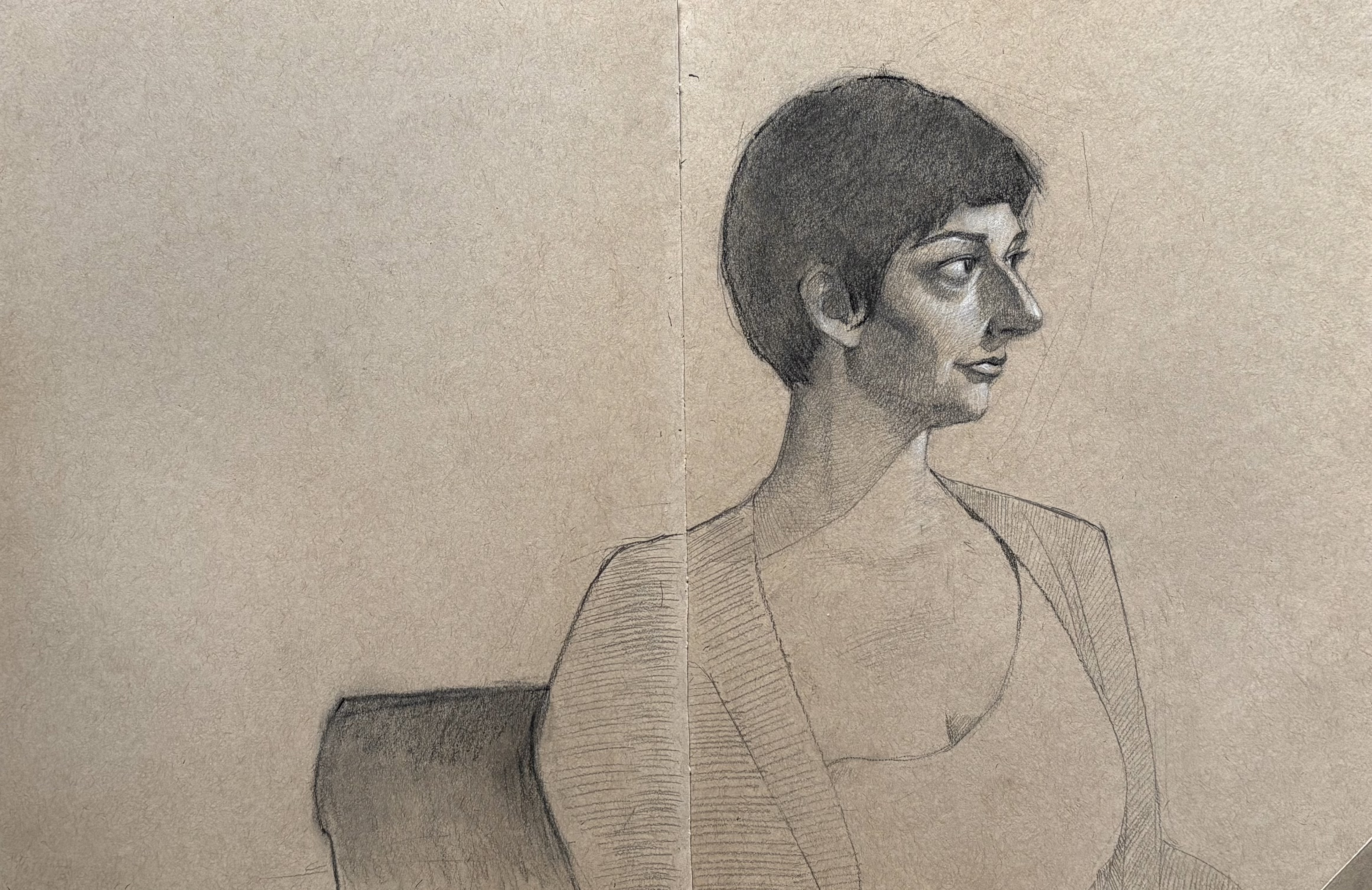 Tess, charcoal on toned paper, 11×16, $80